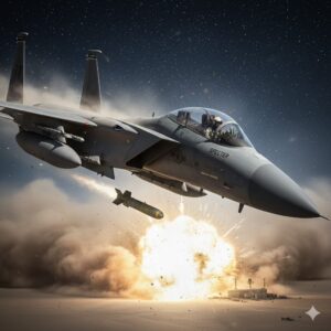 Captain Jax “Specter” Riley, lead pilot of the 45th Tactical Fighter Squadron, peered through the swirling, opaque yellow haze that now engulfed their world. Inside the cockpit of his F-15E Strike Eagle, the sophisticated displays flickered with warnings, painting a dire picture of the chaos outside. A massive, unexpected sandstorm, a beast of wind and grit, had erupted without warning, blanketing their target zone—a high-value enemy Surface-to-Air Missile (SAM) site—and rendering air support impossible for the ground troops already under heavy fire.