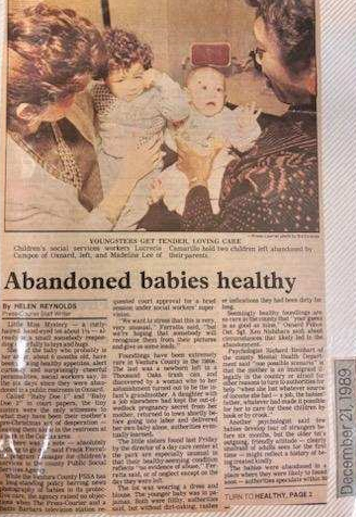 According to law enforcement in December 1989, two children were discovered abandoned in a public park restroom in Oxnard, California.
