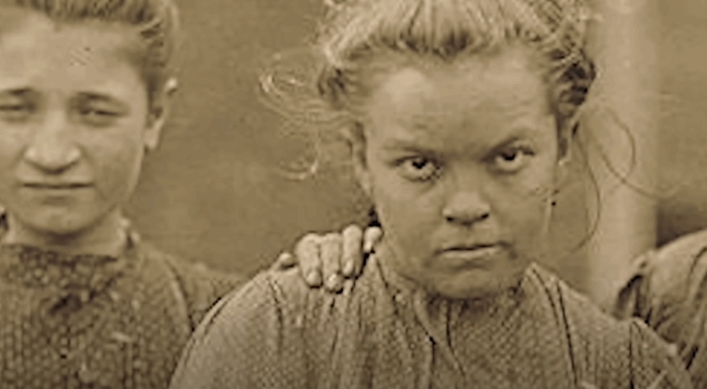 Most disturbing of all, the youngest sister’s pupils, when closely inspected, revealed tiny letters carved into the photo’s emulsion: