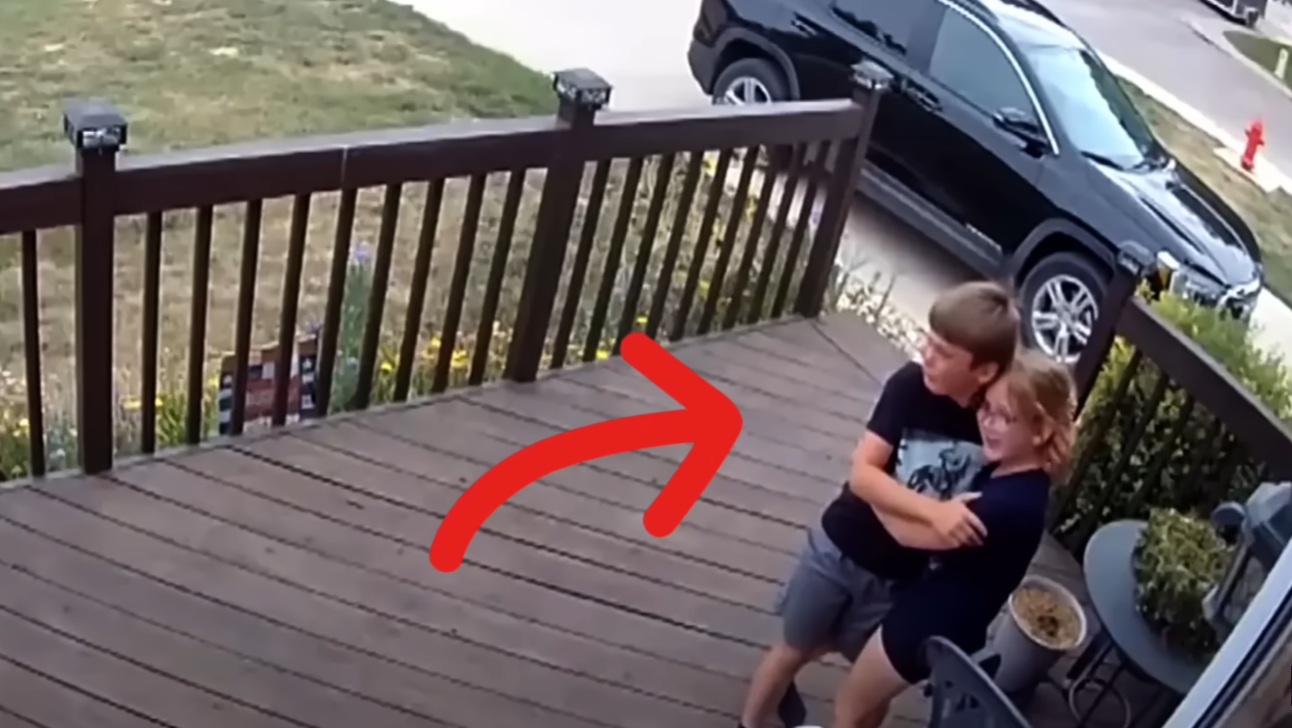 Edmund, Oklahoma – What began as a quiet afternoon turned into a heart-pounding moment of heroism and relief when a Blink doorbell camera captured two young siblings hugging in fear on the porch of their home. What followed was a dramatic scene that has since captured hearts across the internet.