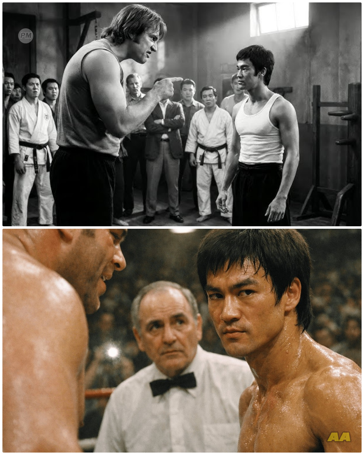 The arena went quiet, waiting for Bruce Lee’s response.