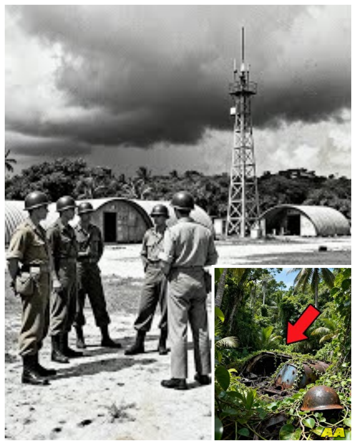 The men built their base on the island’s northshore, cutting into the thick canopy to raise aluminum quanset huts, radio masts, and fuel drums painted with dull green camouflage.