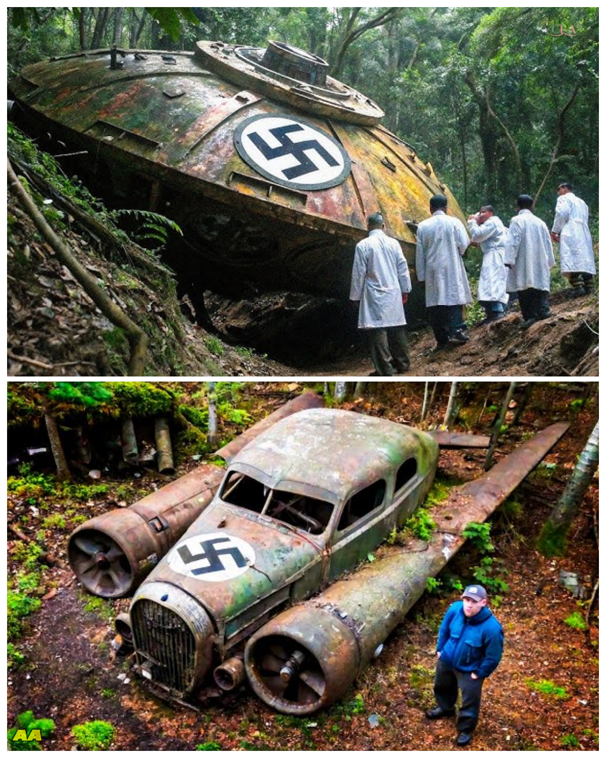 It was a tank, its once-mighty form now a ghostly silhouette against the vibrant green.