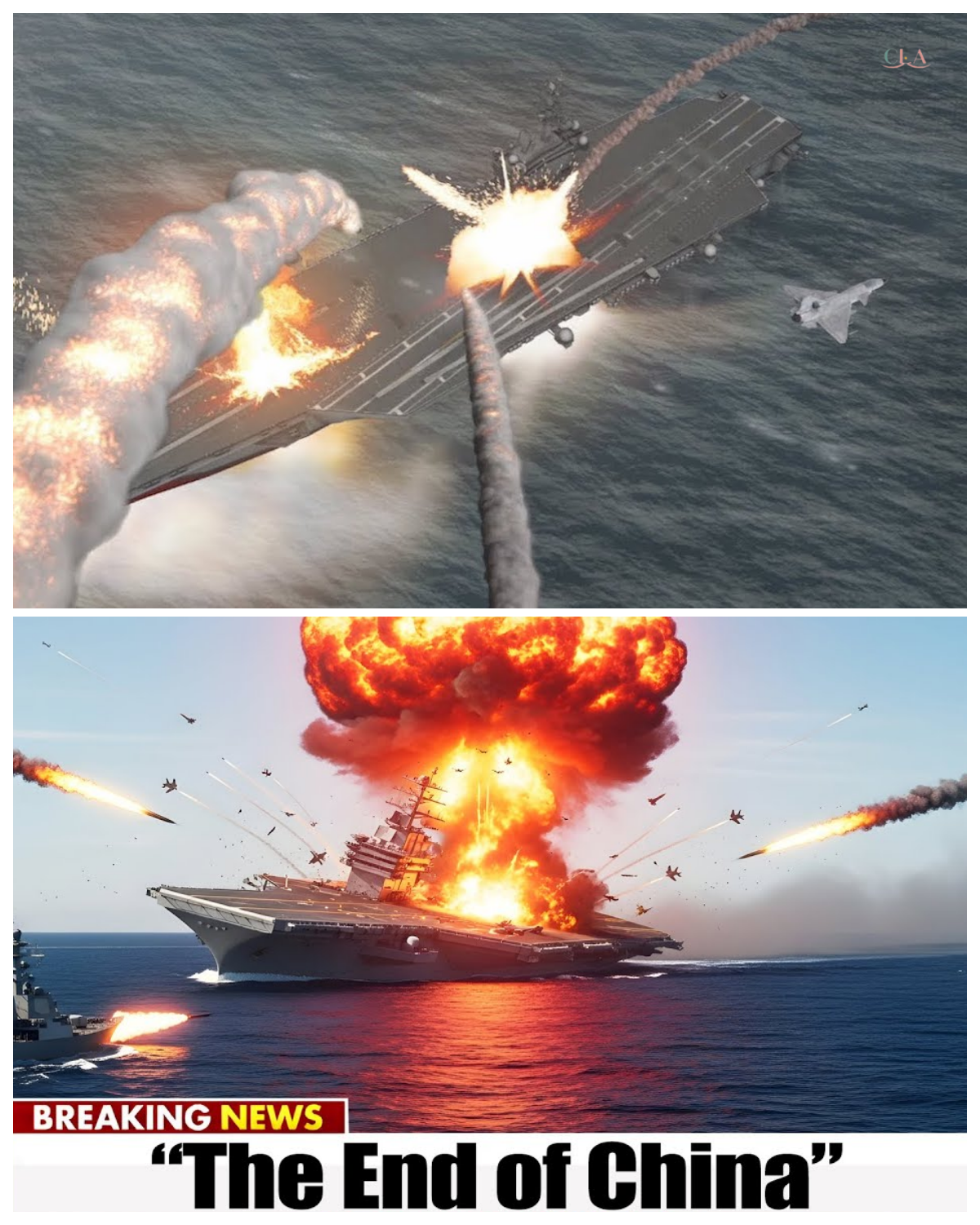 The second missile struck true, slamming into the carrier’s aft section.