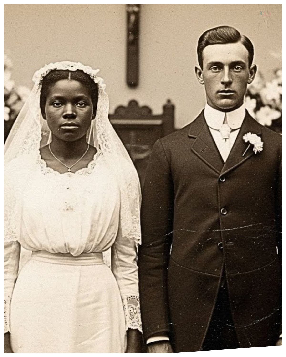 The groom was undeniably white, his pale skin visible even through the photograph’s deterioration.
