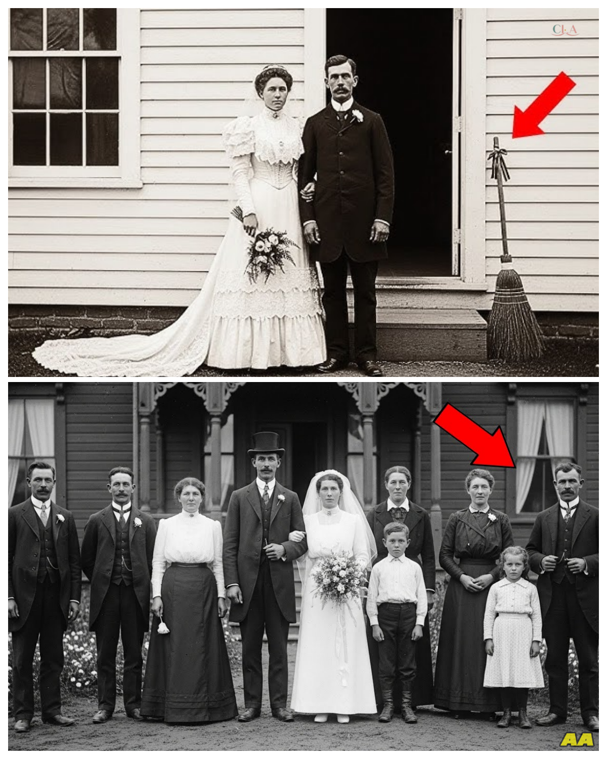 A wedding photo from 1905 looks normal, but in the background, historians are shocked.