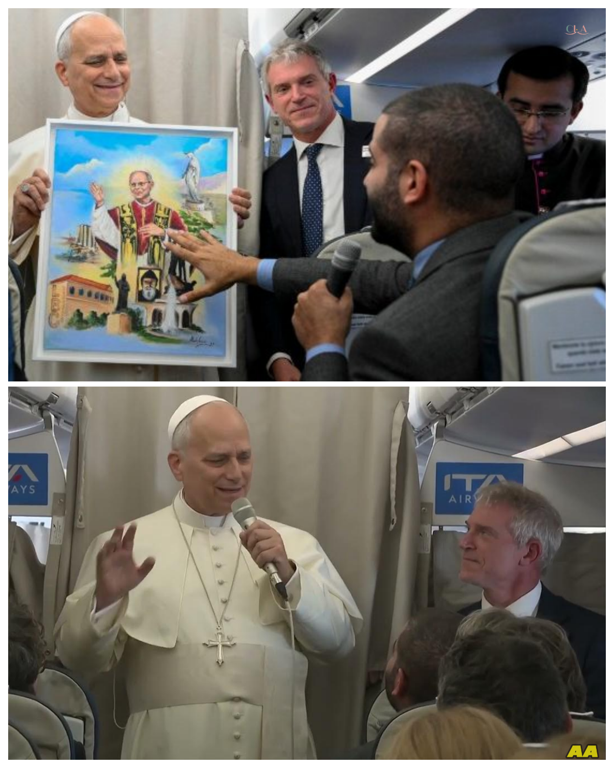 In the dim light of the airplane cabin, Pope Leo XIV sat in silence.