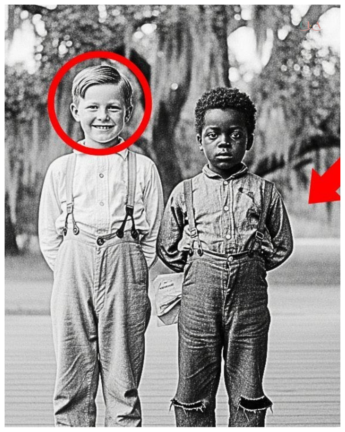 Historians enlarged this 1895 photo and found what one boy was hiding behind his back.