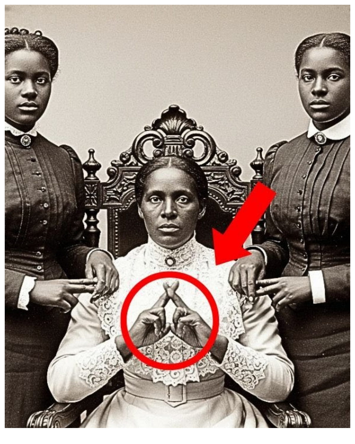 It was just a portrait of a mother and her daughters, but look more closely at their hands.