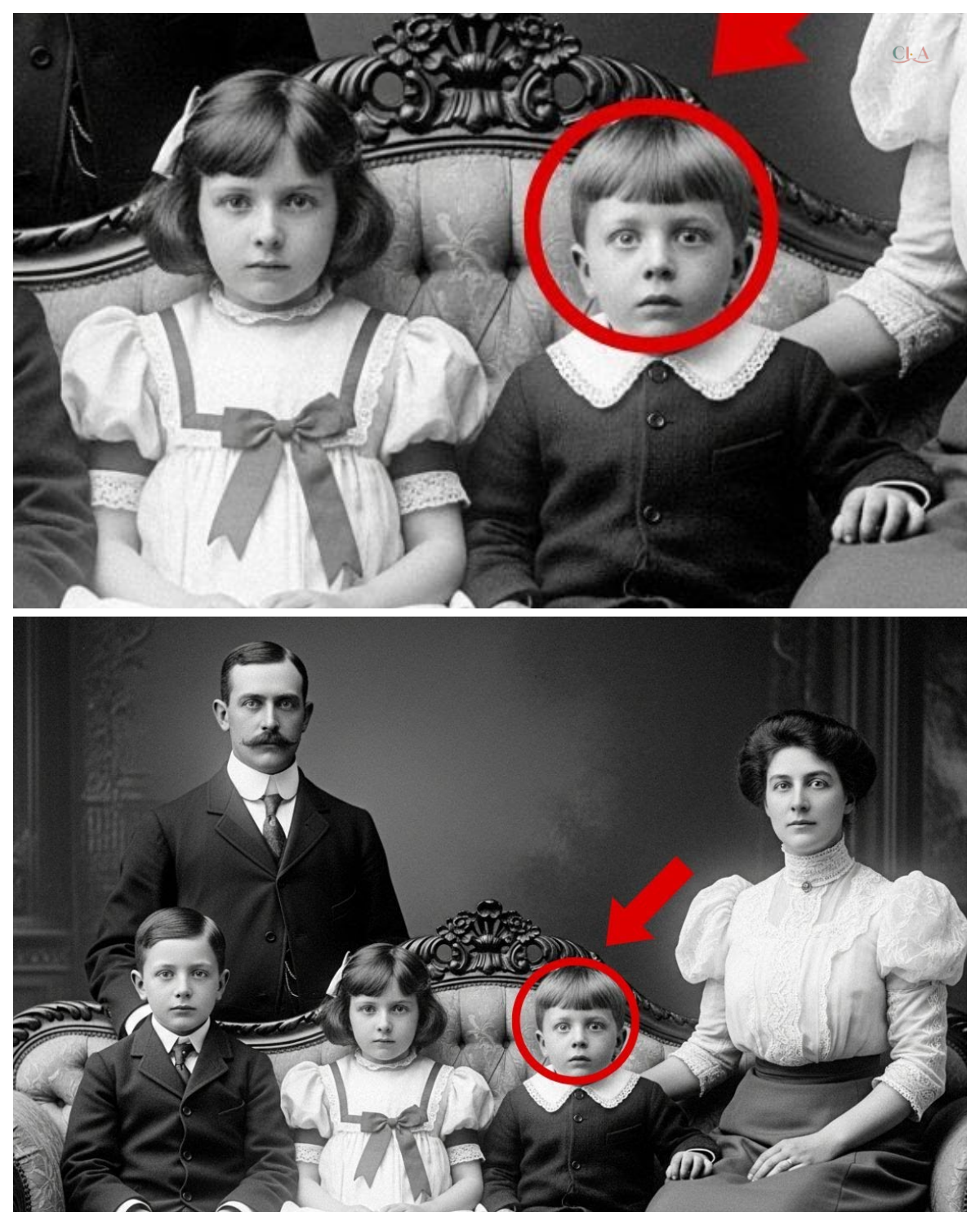 His small hands were gripping the edge of the sofa so tightly that his knuckles appeared white even in the sepia tones of the photograph.