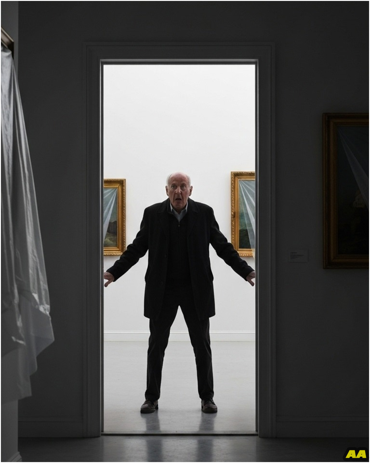 I stepped inside, my eyes slowly adjusting to the dim light filtering through those grimy windows. The hardwood floors beneath my feet were polished, not warped with moisture damage. Along the walls, I could make out what appeared to be paintings, each one carefully covered with clean white cloth. Professional easels stood at precise intervals, and track lighting had been installed along the ceiling – modern fixtures that definitely hadn’t been there when this place was built.