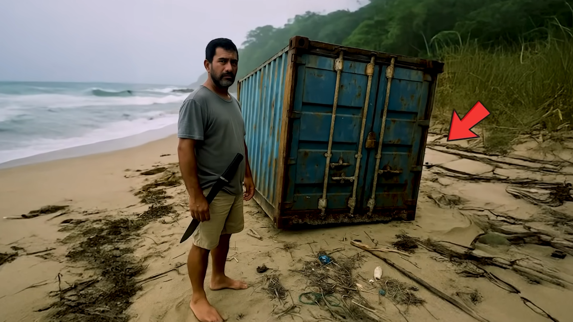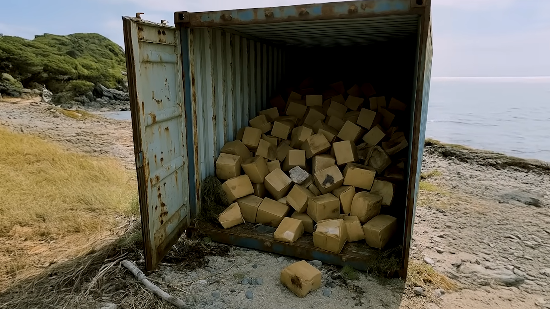 Washed up on the shore of the remote island was a large container.