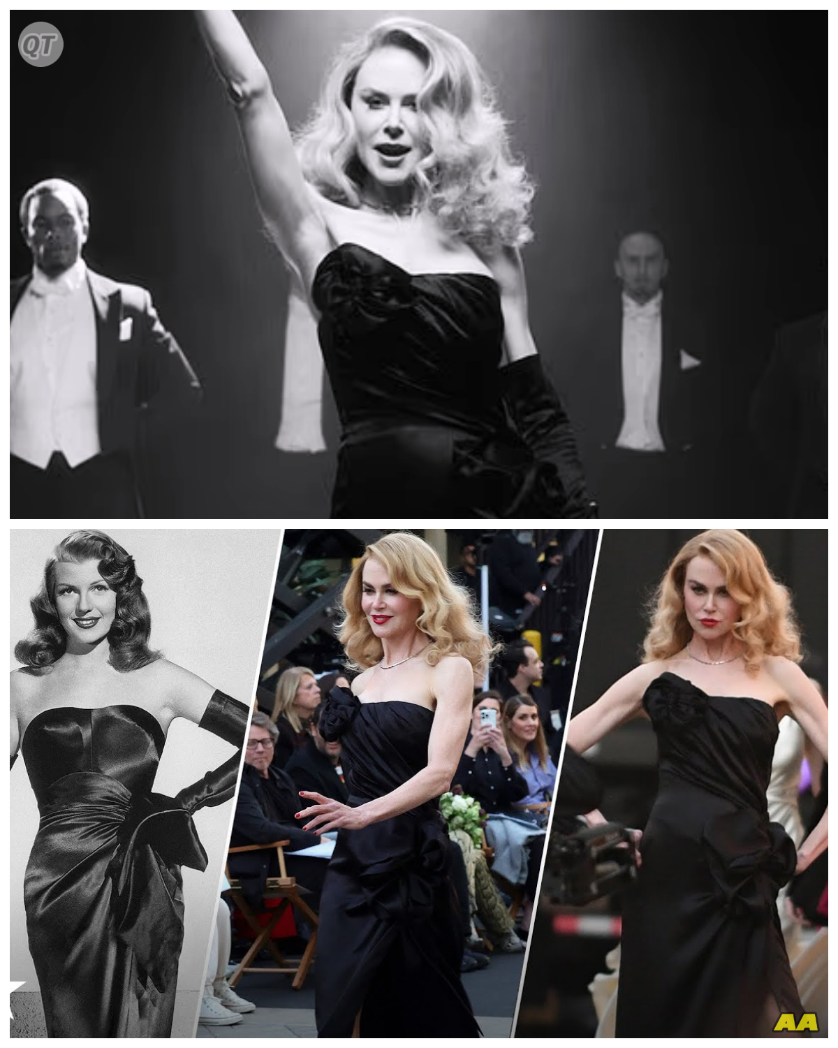 Draped in a stunning black satin gown by Chanel, designed by Matthieu Blazy, Nicole Kidman paid homage to the iconic dress worn by Hayworth in “Gilda.