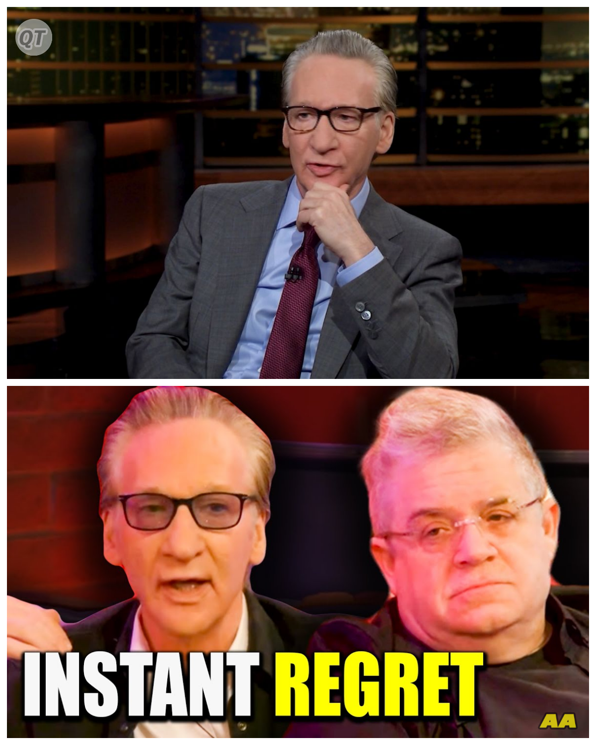 Bill Maher sat in the dimly lit green room of the studio, staring at his reflection in the mirror.