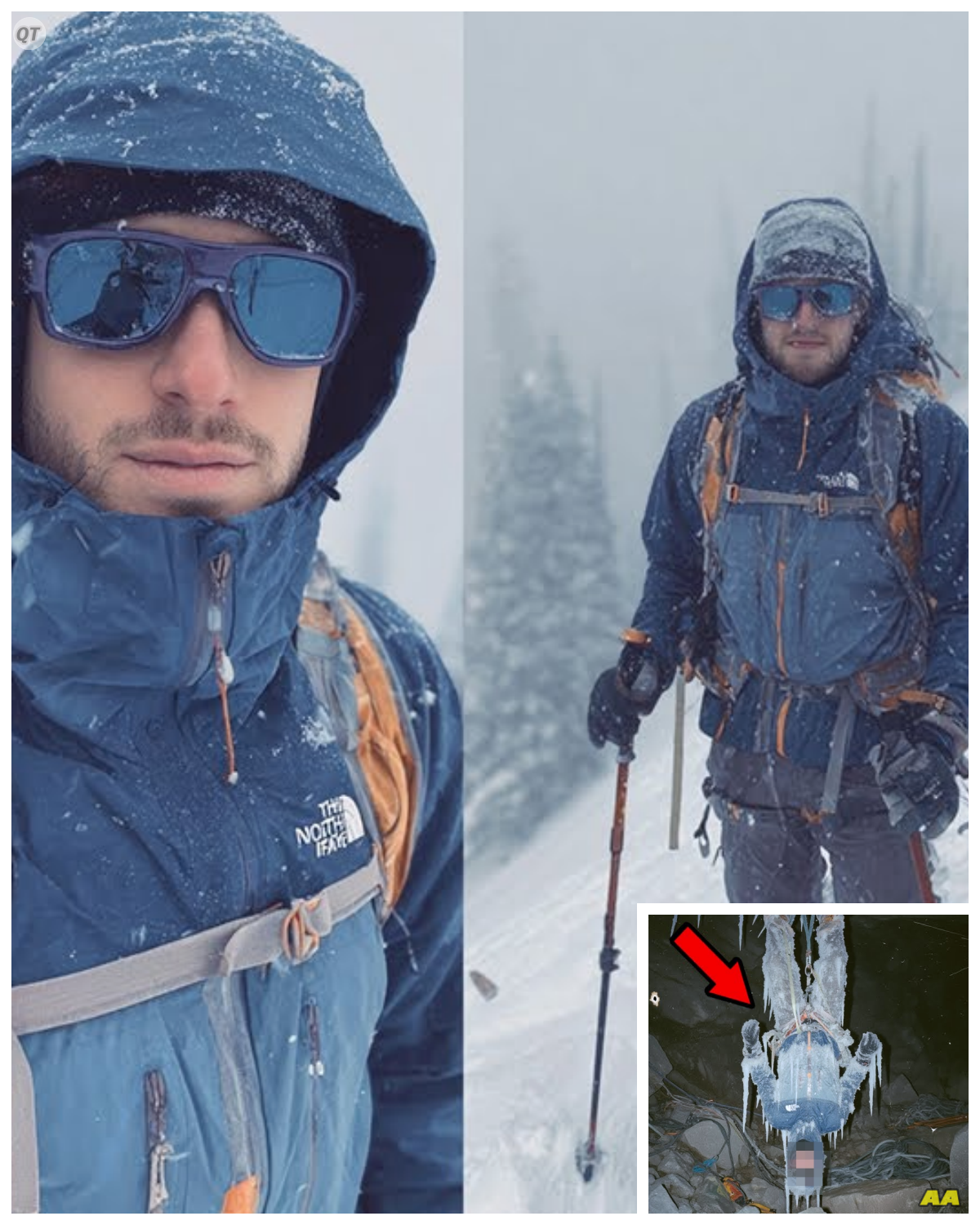When rescuers found the body, it was hanging upside down in the ice, frozen, covered in ice, tied with a climbing rope to the cave wall.