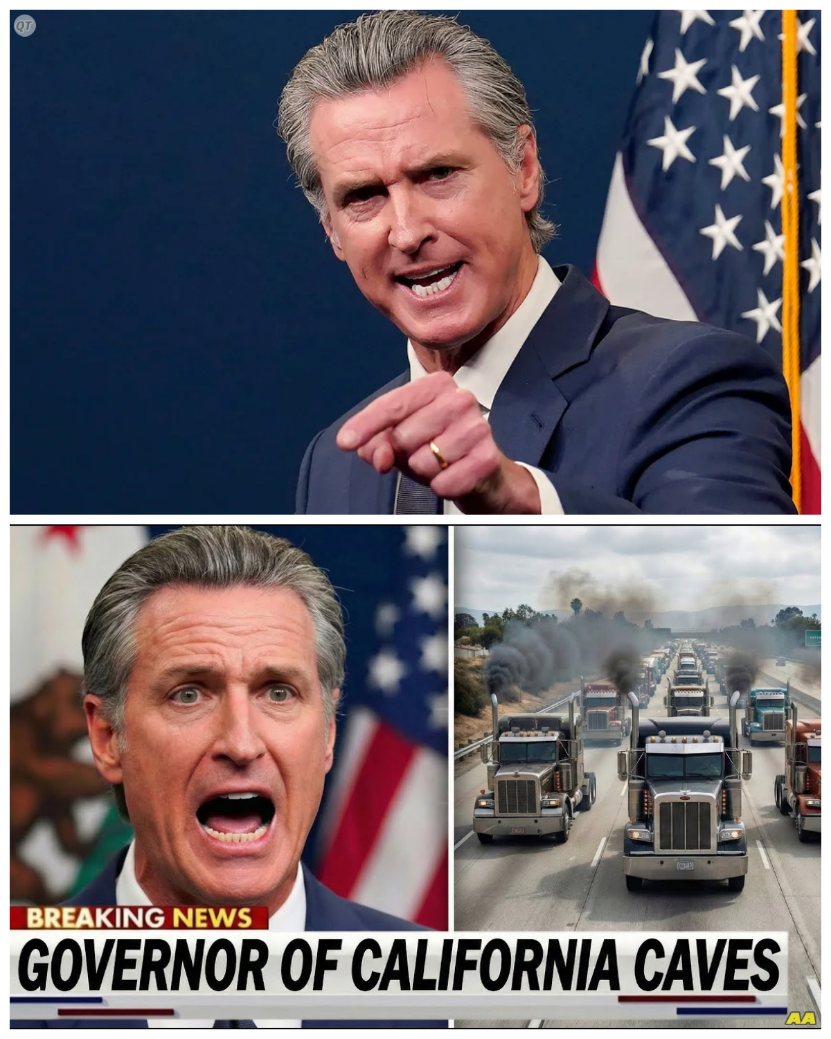 “California’s Trucking Exodus: Is the Governor Driving Us All to Disaster? 🚚💨” As the Golden State faces an unprecedented crisis with trucking companies fleeing like rats from a sinking ship, one has to wonder, “Is Governor Newsom just the captain of this Titanic?” With regulations tightening and costs skyrocketing, the once-thriving industry is now a ghost town of abandoned trucks and broken dreams, leaving Californians to wonder if their livelihoods are next on the chopping block. As the trucks roll out, so do the jobs, and the state’s economy hangs by a thread, teetering on the edge of collapse. Will the governor step up or just step aside as chaos reigns? 👇